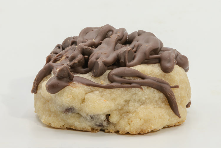 Delectable buttery chocolate chip cookie dough topped with a rich layer of chocolate and mini semi-sweet chocolate chips.