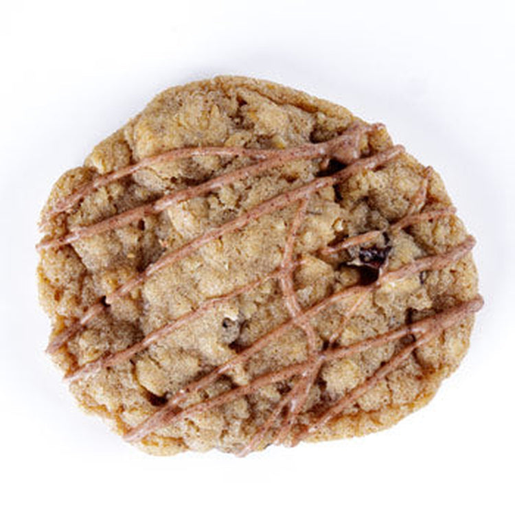 A perfectly delicious chewy oatmeal raisin cookie topped with a cinnamon drizzle. A new favorite everyone will love!