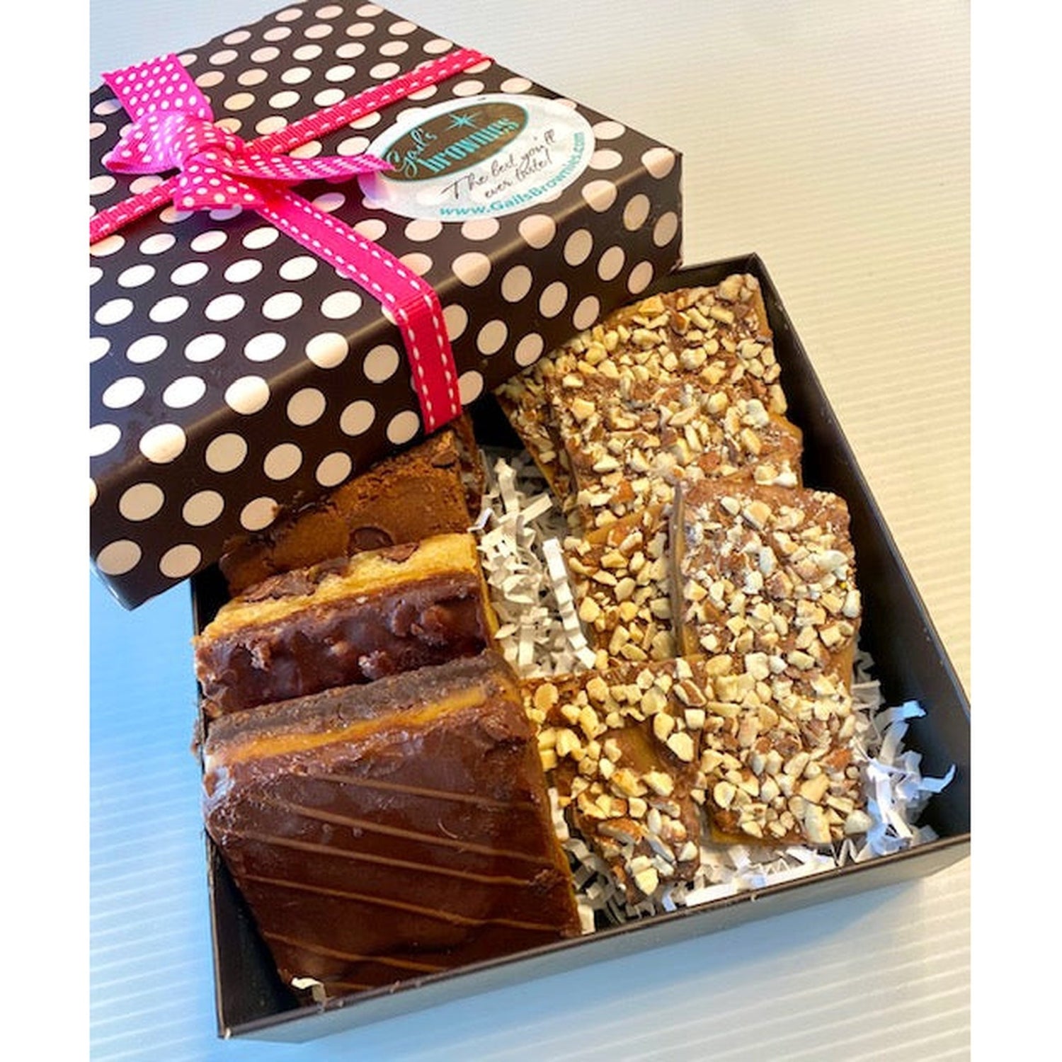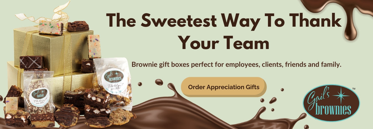 Gail's Brownies creates luscious gourmet brownies, cookie, and toffee which are available in Gift Boxes and Gift Towers! Our products are beautifully packaged and include a complementary personal greeting. They are available in a variety of combinations which are great for holidays, special occasions, corporate and personal gifts.